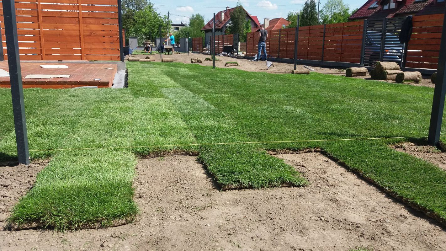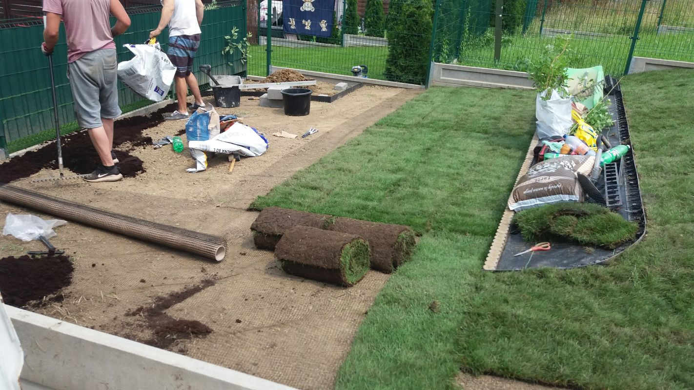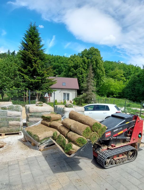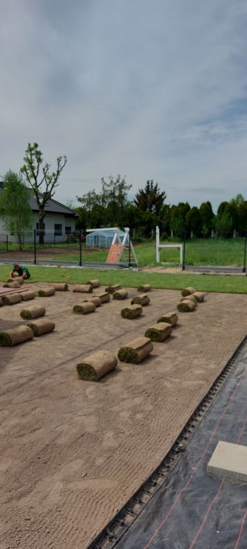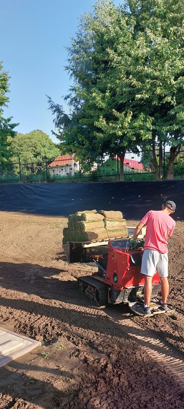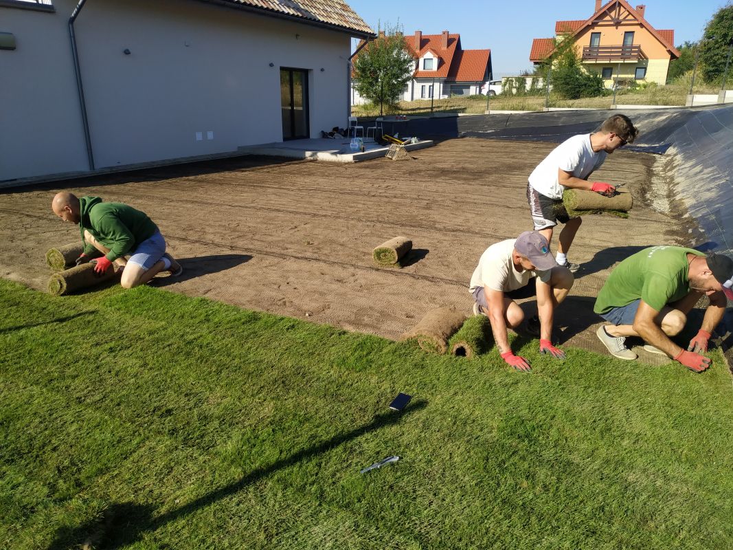 - Profesjonalne ułożenie trawy z rolki – gęsta, zdrowa murawa gotowa do użytkowania w krótkim czasie