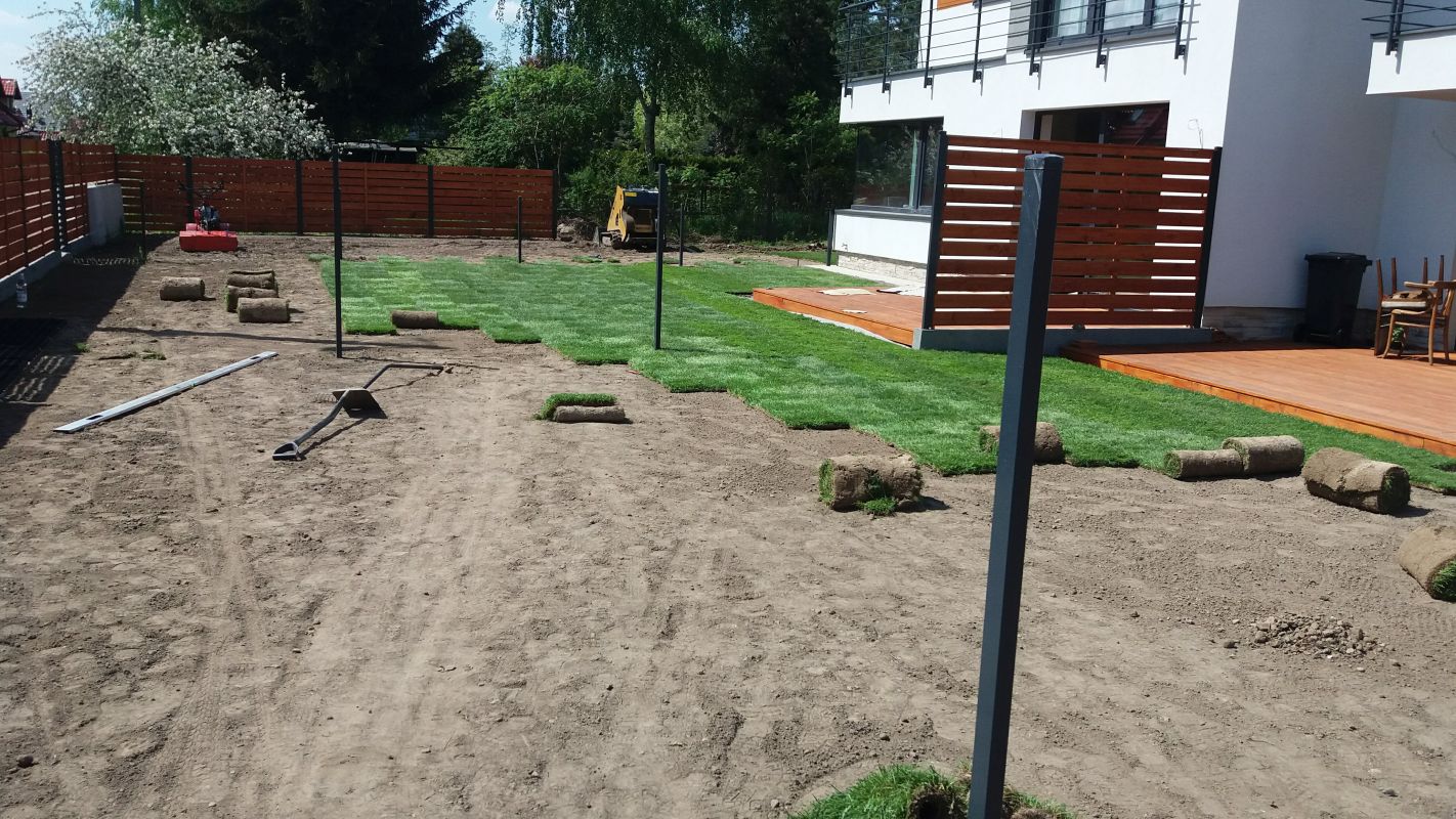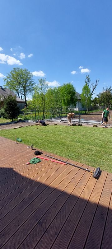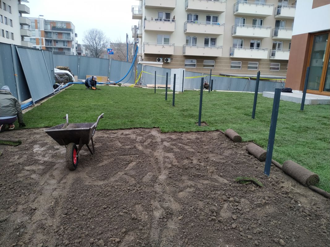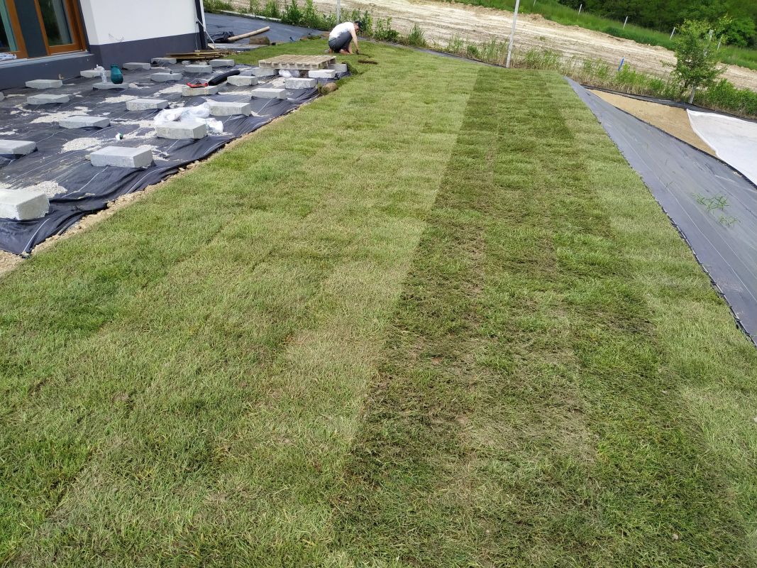 - Profesjonalne ułożenie trawy z rolki – gęsta, zdrowa murawa gotowa do użytkowania w krótkim czasie