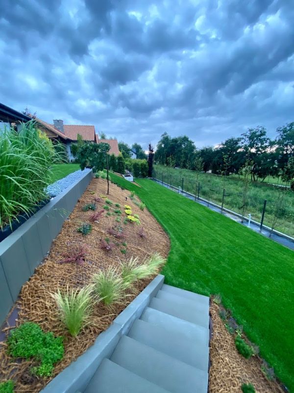 - Elementy małej architektury – ścieżki, rabaty, murki oporowe i inne rozwiązania zwiększające funkcjonalność terenu